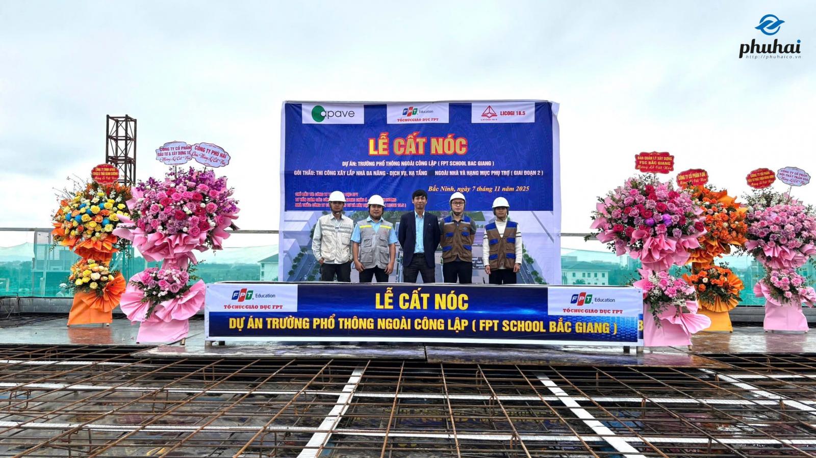 Ngày 7 tháng 11 năm 2025, Công ty Cổ phần Đầu tư Xây lắp và Thương mại Phú Hải tổ chức Lễ Cất Nóc dự án “Trường Phổ Thông Ngoài Công Lập FPT School Bắc Giang – Giai đoạn 2”, thuộc gói thầu thi công xây lắp nhà đa năng – dịch vụ, hạ tầng kỹ thuật ngoài nhà và hạng mục phụ trợ. Sự kiện đánh dấu bước hoàn thành quan trọng trong tiến độ thi công, khẳng định năng lực triển khai dự án của Phú Hải với vai trò nhà thầu thi công cơ điện (M&E).