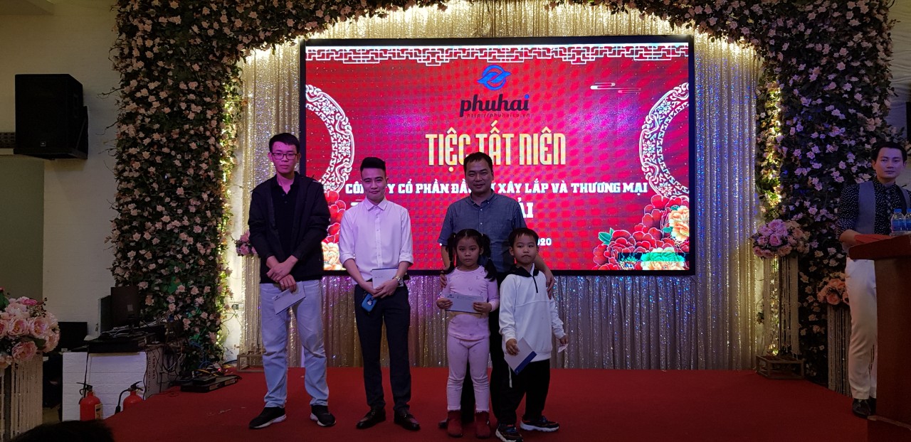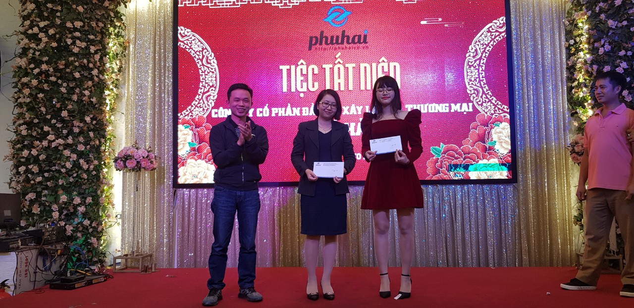 Trong buổi lễ trọng thể và thân mật này, thay mặt Ban lãnh đạo, ông Nguyễn Công Công - Giám đốc Công ty đã gửi tới các vị khách mời cùng toàn thể CBNV và gia đình lời chúc mừng tốt đẹp nhất nhân dịp năm mới. Tất cả cùng nâng ly chúc mừng những thành công đã đạt được trong năm qua. Nhân dịp này, Giám đốc cũng điểm qua tình hình SXKD của Phú Hải trong một năm qua. Năm 2019, với chiến lược cùng hướng đi đúng của Ban lãnh đạo, Phú Hải đã vượt qua nhiều khó khăn, thách thức và đạt nhiều thành tựu. Sau lời phát biểu của Giám đốc là clip được Tổng kết, nhìn lại một năm của Phú Hải do phòng Marketing chuẩn bị, được trình chiếu trên màn hình lớn, để lại nhiều cảm xúc cho người xem, đặc biệt CBNV công ty. Cũng tại chương trình, 5 CBNV có thành tích xuất sắc trong công tác SXKD của năm đã được vinh danh với các danh hiệu: “Quản lý tiêu biểu”; “Quản lý công trường triển vọng”; “Nhân viên văn phòng chuyên cần”; “Kỹ sư trẻ triển vọng”. Tiếp chương trình, cả hội trường được khuấy động lên bởi những tiết mục văn nghệ sôi động từ phía Ban tổ chức, và các ca khúc ngẫu hứng từ các thành viên, các trò chơi tập thể với nhiều phần quà hấp dẫn…