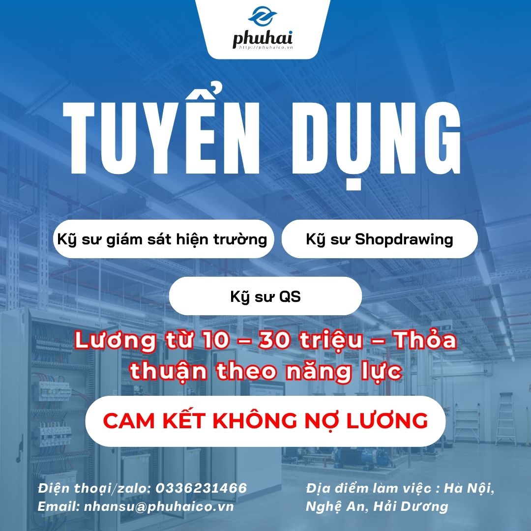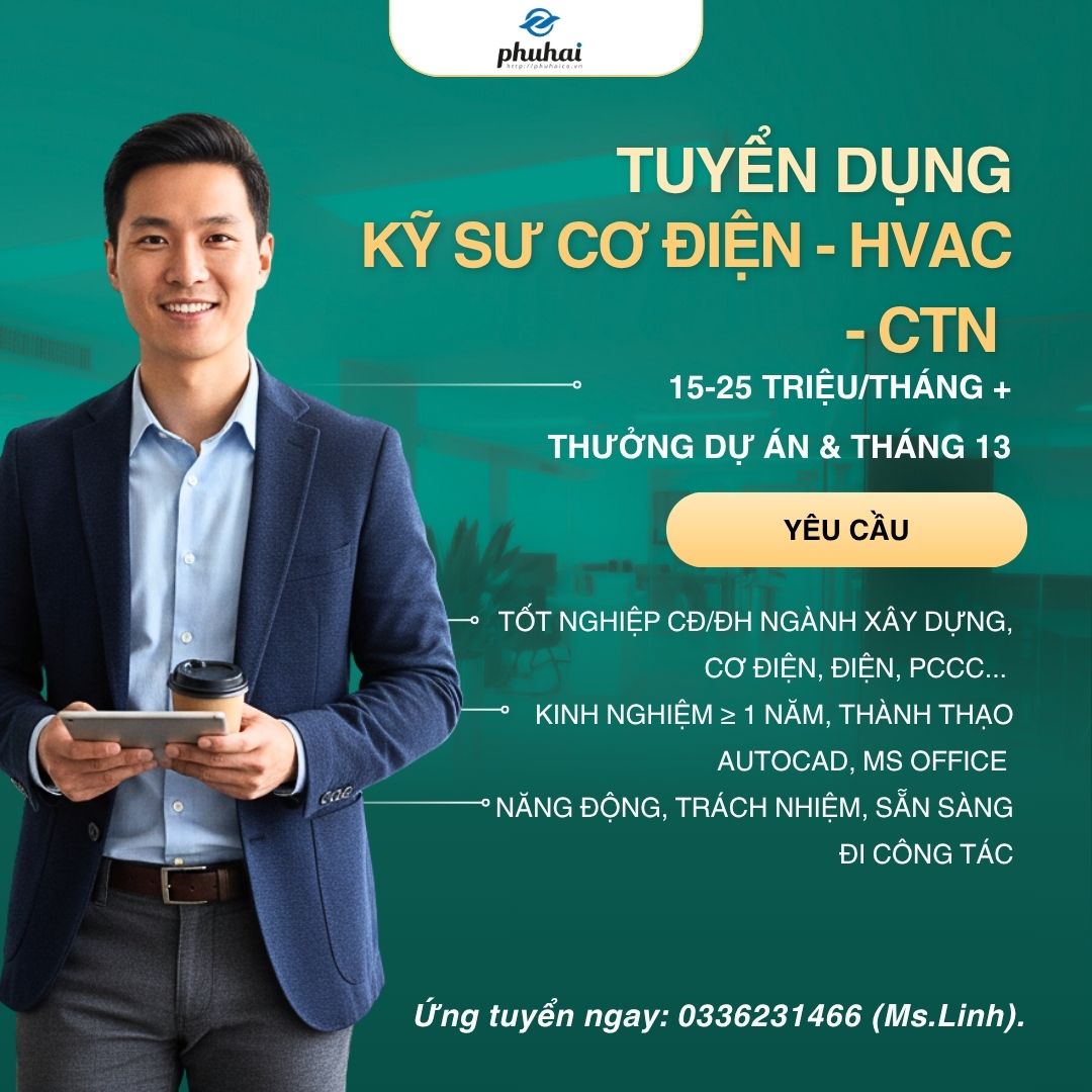 Công ty PHUHAICO đang tuyển gấp 03 kỹ sư Điện, HVAC, PCCC tham gia các dự án nhà máy công nghiệp quy mô lớn. Nếu bạn là người có chuyên môn, yêu thích kỹ thuật và mong muốn phát triển sự nghiệp trong môi trường chuyên nghiệp, năng động – đây là cơ hội dành cho bạn.
